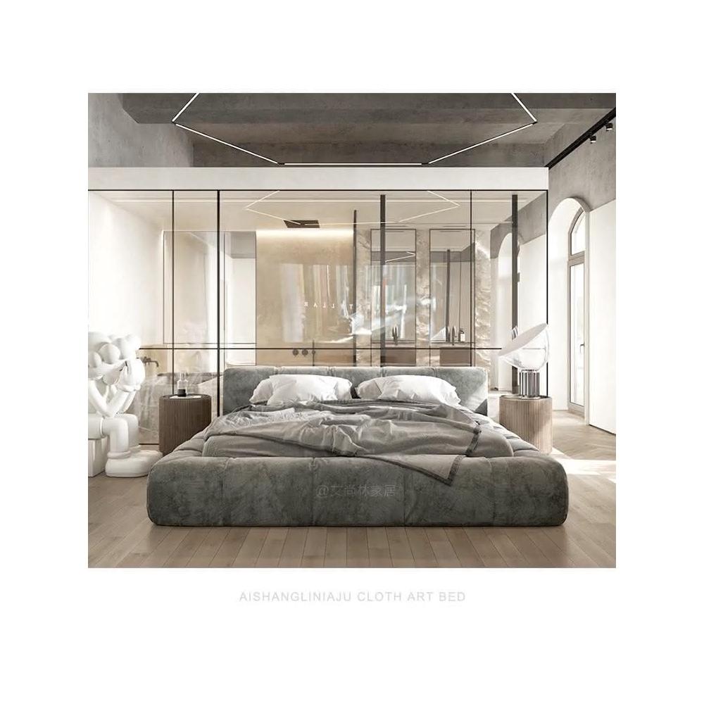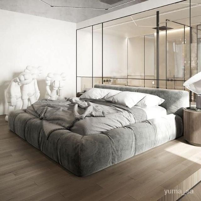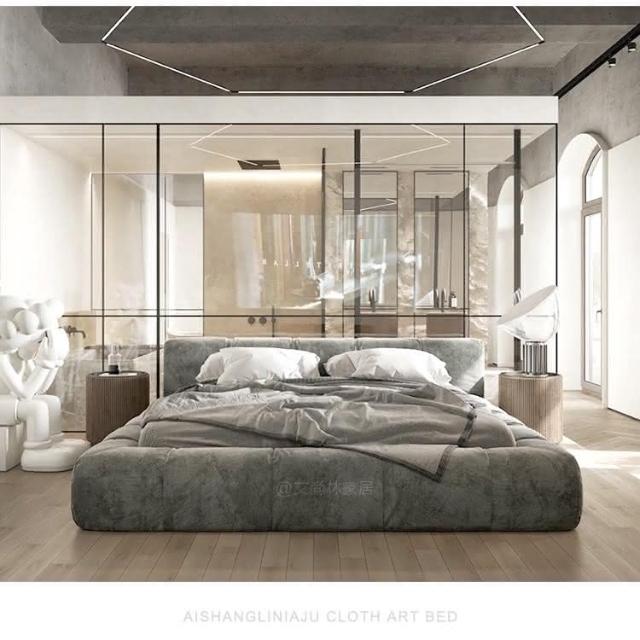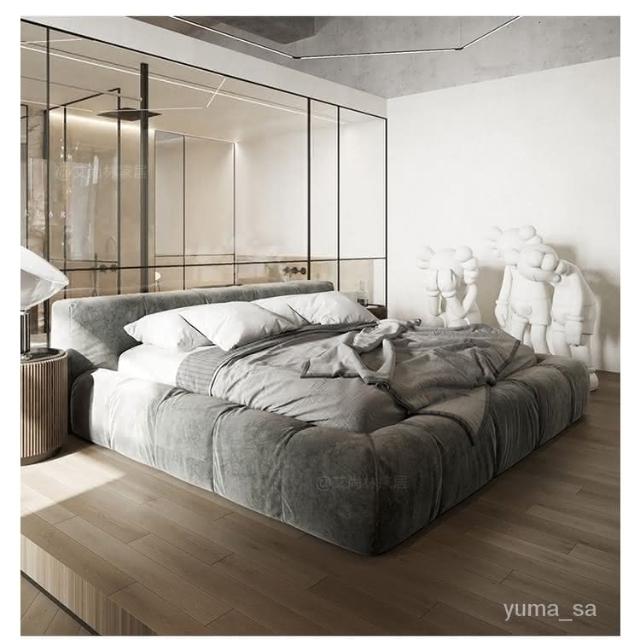 輕奢佈藝床榻榻米落地床現代簡約侘寂風主臥泡芙意式極榻榻米 輕奢床 真皮床 簡約床 親子床 儲物床 超大床 懸浮床 主臥床