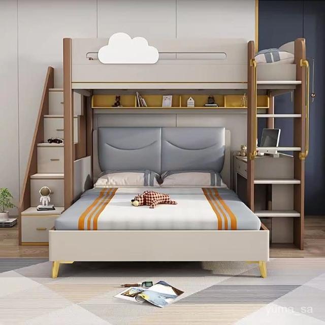 萬達木業 式上下床 錯位多功能上下鋪 L型高低子母床小戶型實木框 床架 高架床 上下床 雙人床架 雙層床 雙人床 鐵架床