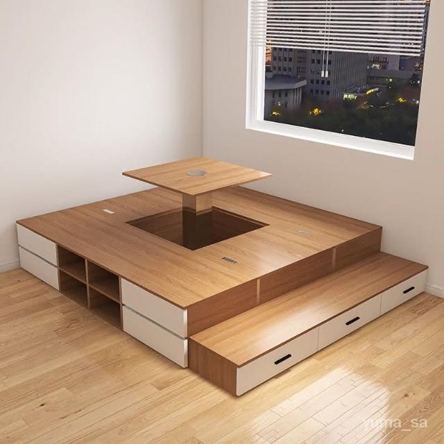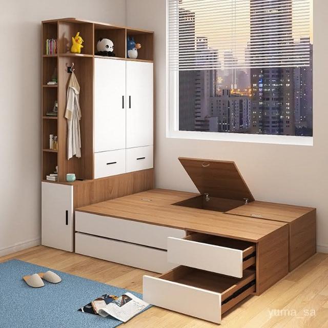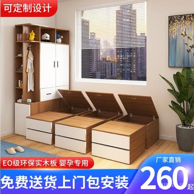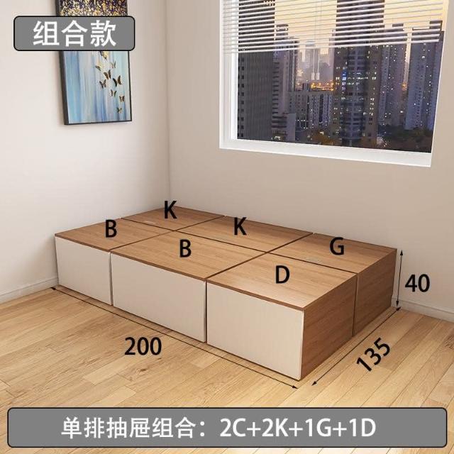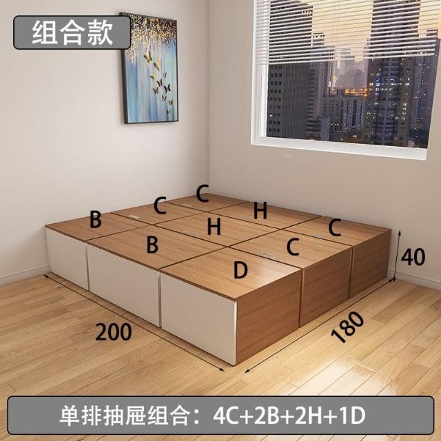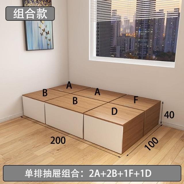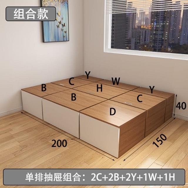 組閤箱子床實木榻榻米魔方收納高儲物床箱體地臺床立櫃木箱拚接床床架 雙人床 大床 榻榻米床 多功能床 BWR2