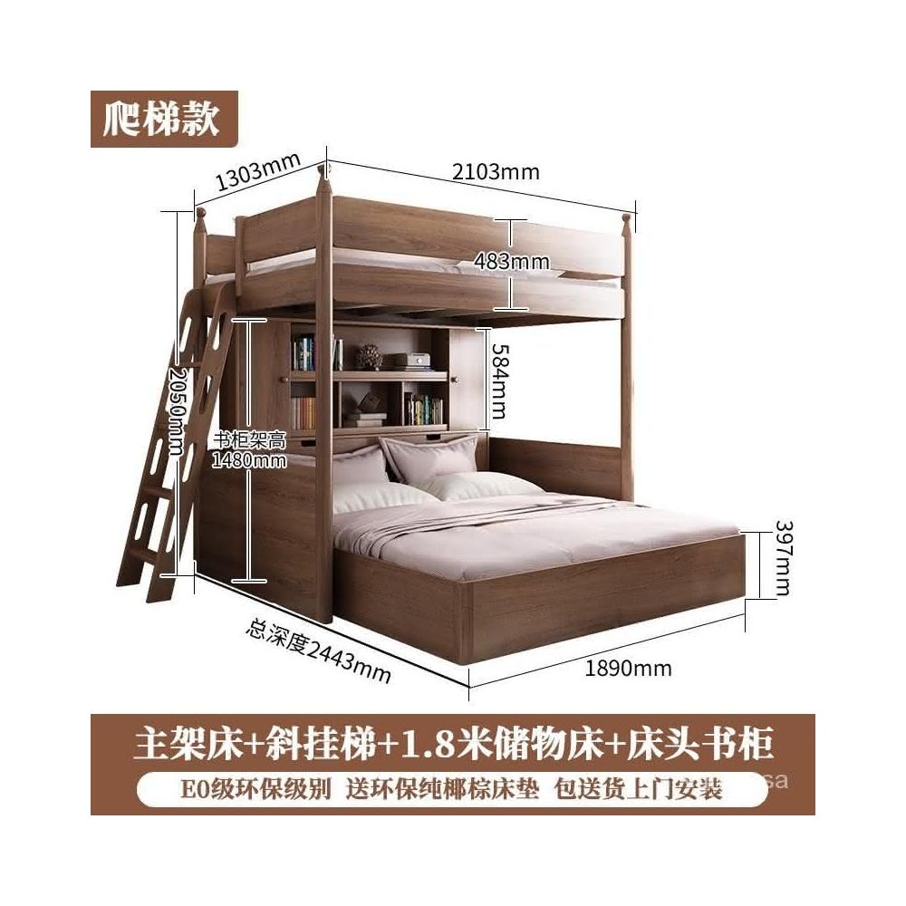 免運包安裝 交錯式上下床錯位型高低床帶書桌衣櫃小戶型上床下桌下空高架床 5尺床 錯位床 儲物床 親子床 DGQ7