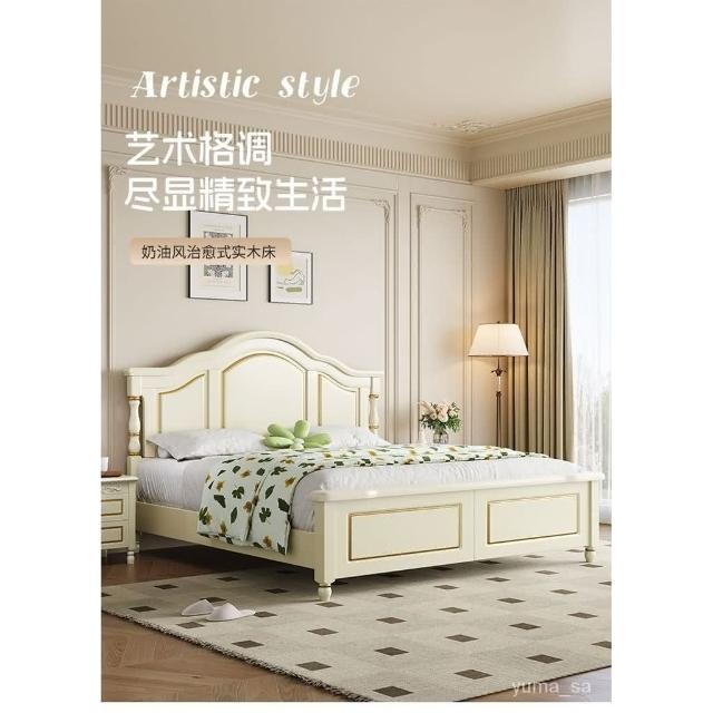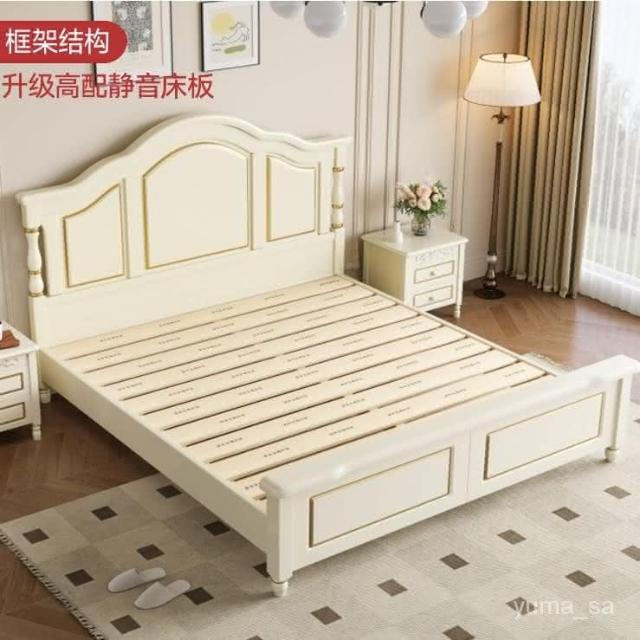 免運 美式輕奢實木床1.2米床1.8m雙人主臥婚床1.5米白色單人高箱儲物床1.2米床 單人標準床 XAMI