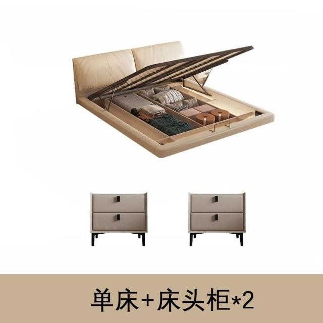 免運 意式輕奢奶油風大象耳朵收納儲物懸浮床小戶型主臥雙人軟包真皮床床架 床組 雙人床 掀床 多功能儲物床 大床 6KGZ