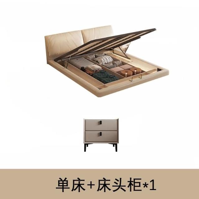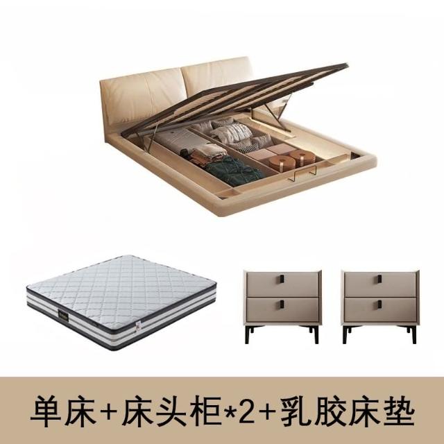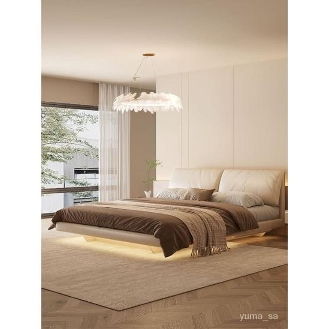 免運 意式輕奢奶油風大象耳朵收納儲物懸浮床小戶型主臥雙人軟包真皮床床架 床組 雙人床 掀床 多功能儲物床 大床 6KGZ