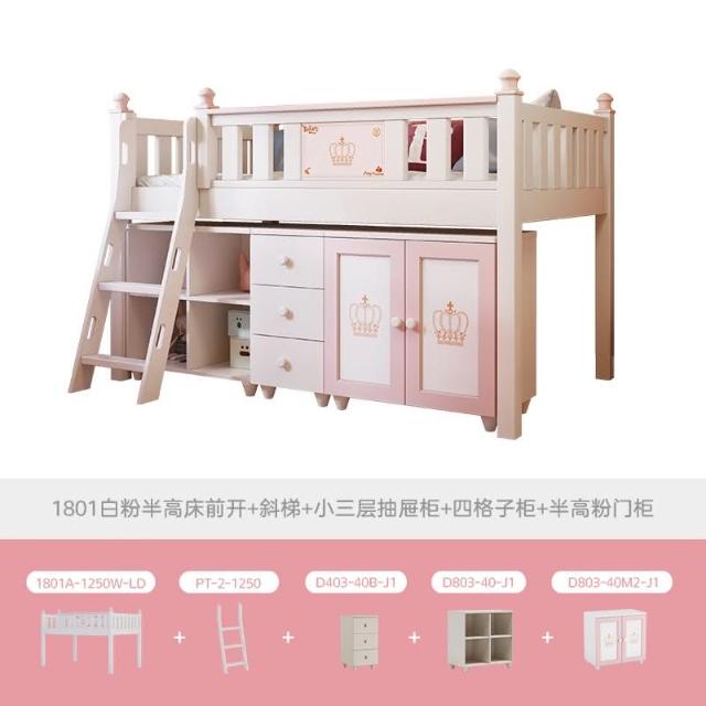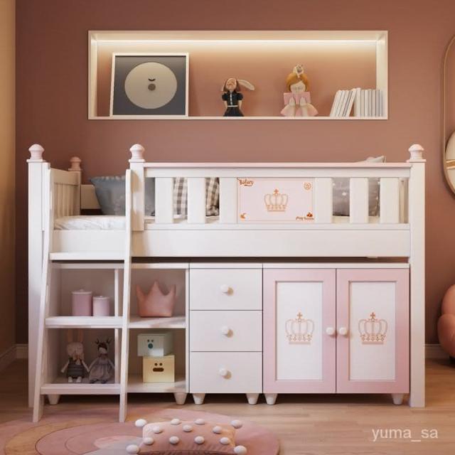 全實木上下床組閤小戶型上床下桌下櫃下空衣櫃書桌一體兒童半高床 上下床 床架 高架床 床 雙層床 字母床 上下鋪 RIRO