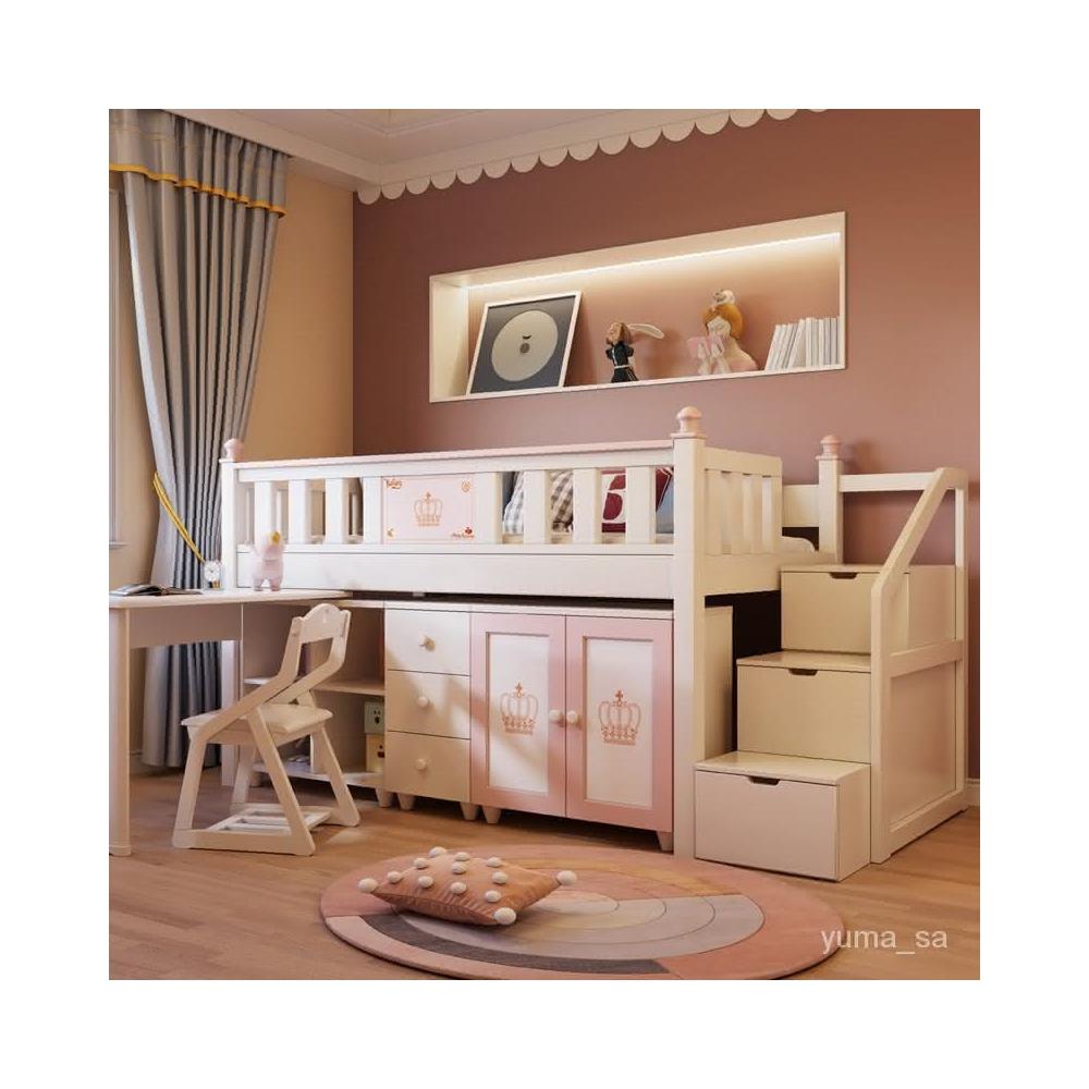 全實木上下床組閤小戶型上床下桌下櫃下空衣櫃書桌一體兒童半高床 上下床 床架 高架床 床 雙層床 字母床 上下鋪 RIRO