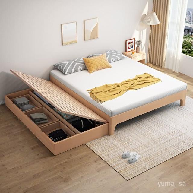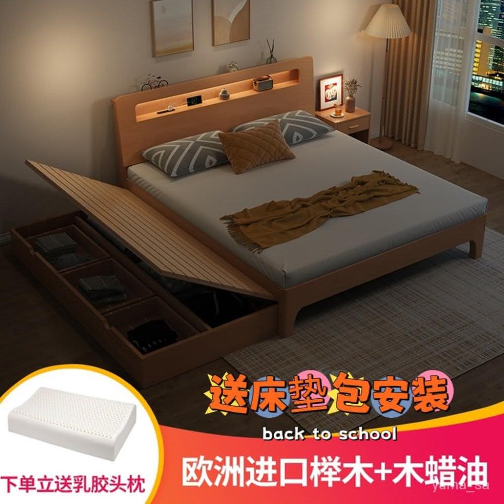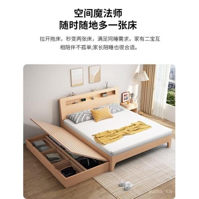 免運 北歐實木床雙人床1.8米現代簡約櫸木1.5兒童子母床拖床抽拉式傢具床架 床組 雙人床 掀床 多功能儲物床 大床 B