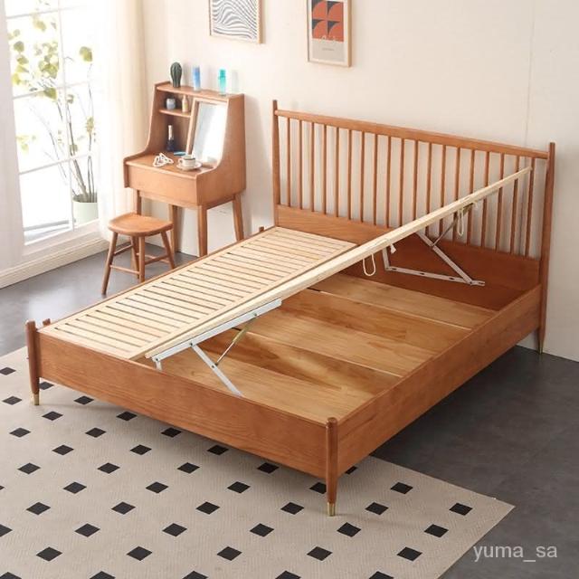 免運 側開高箱床白蠟木高腳收納儲物床日式原木小戶型北歐實木單雙人床床架 床組 雙人床 掀床 多功能儲物床 大床 RE1H