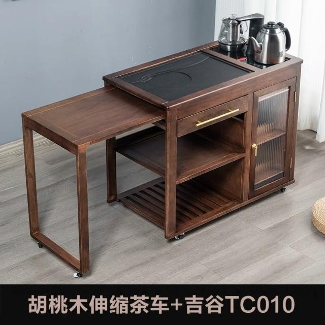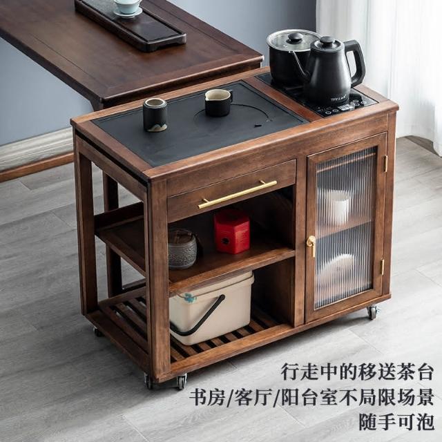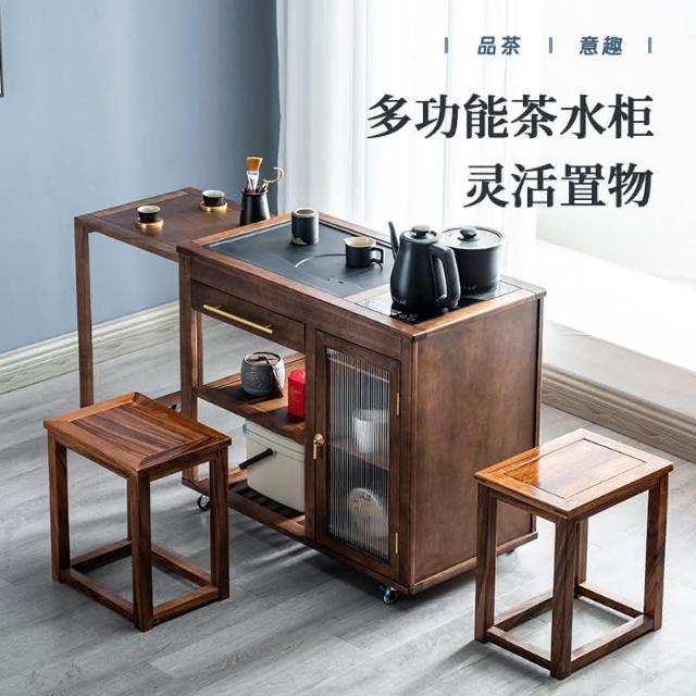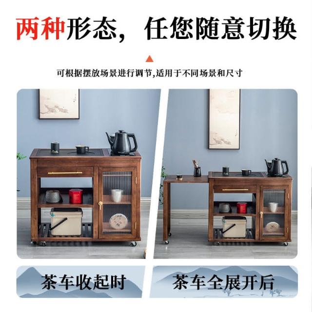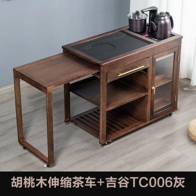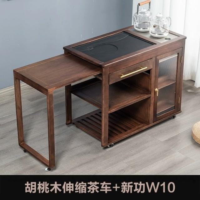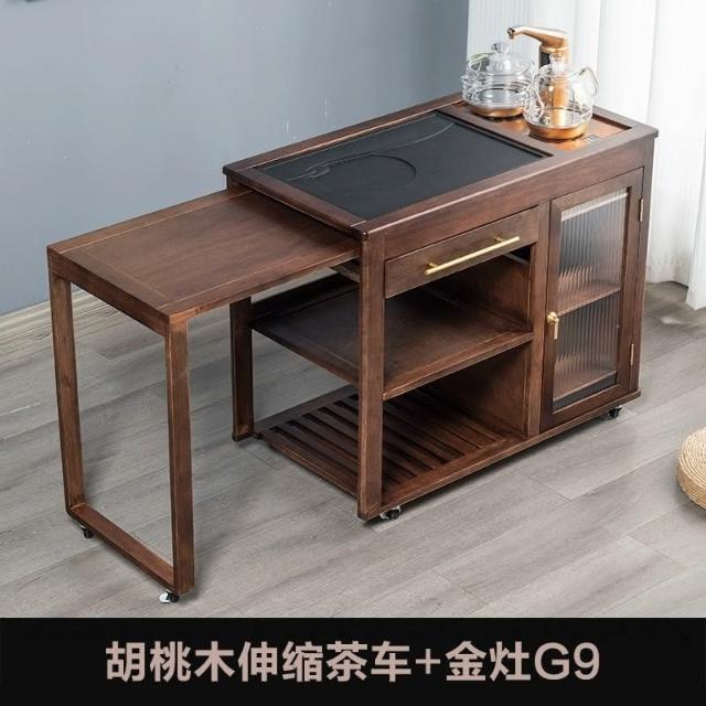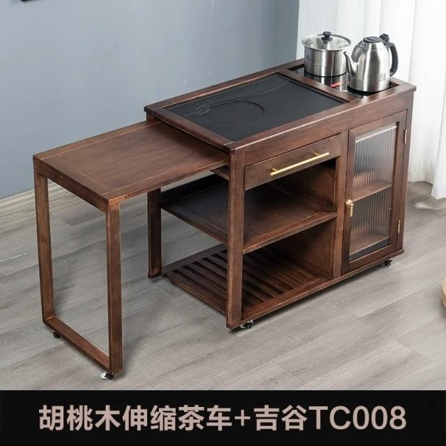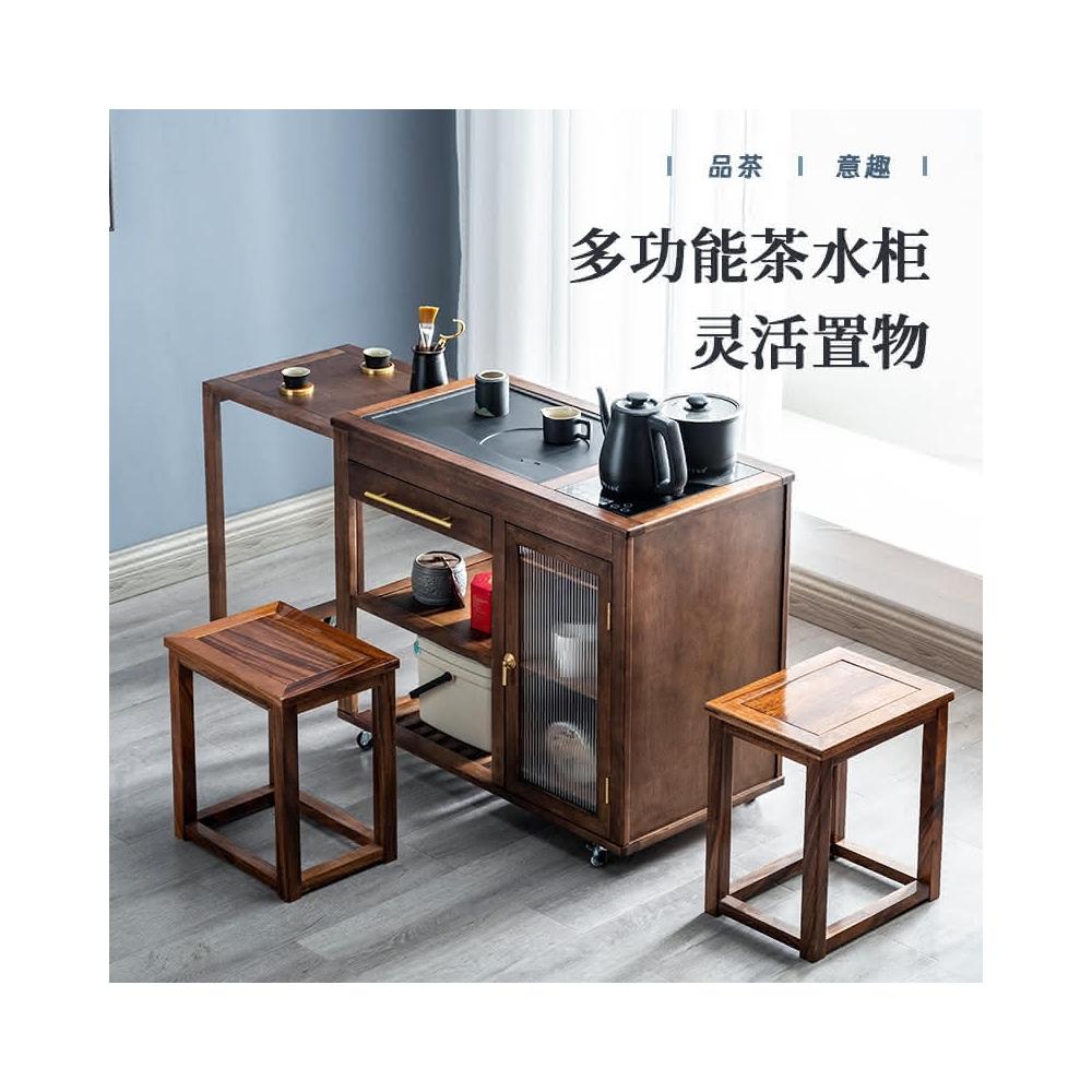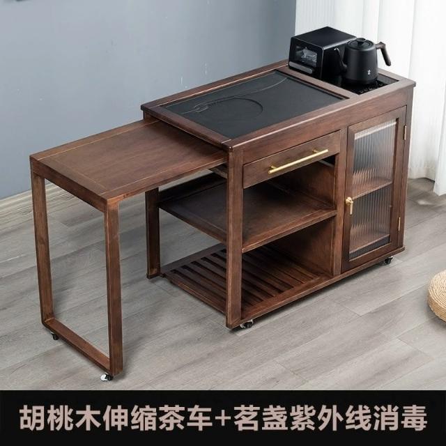 110V 胡桃木茶水櫃實木茶桌邊櫃燒水櫃一體可伸縮茶車移動茶几小茶台桌 茶車 茶桌 泡茶桌 移動茶台 套裝 茶几