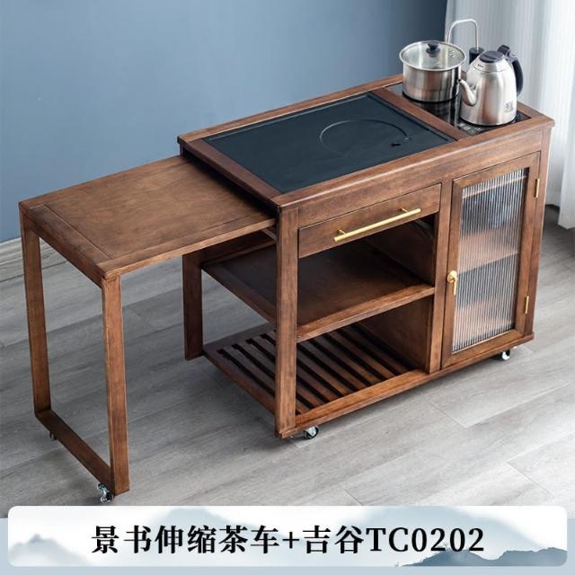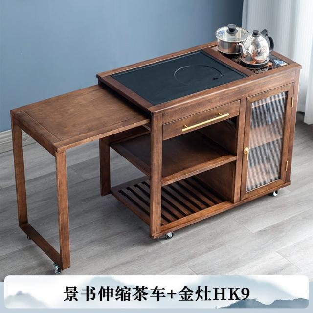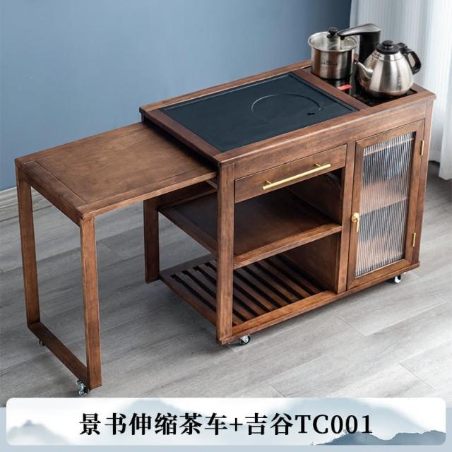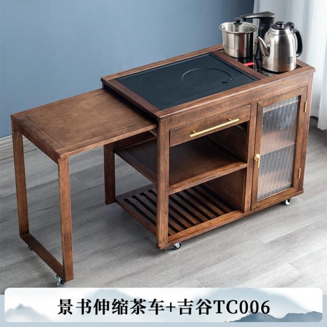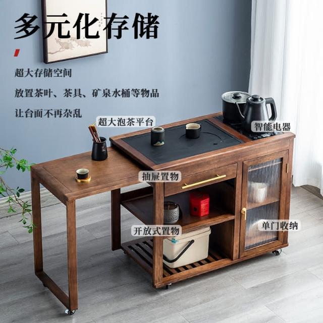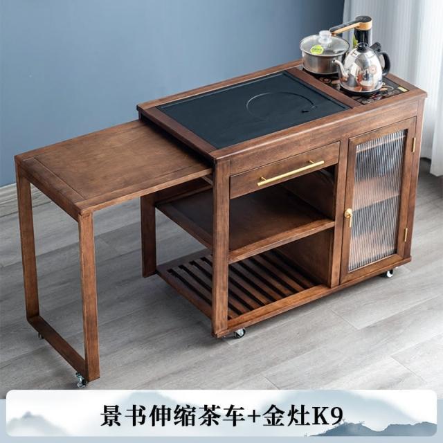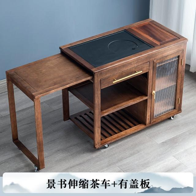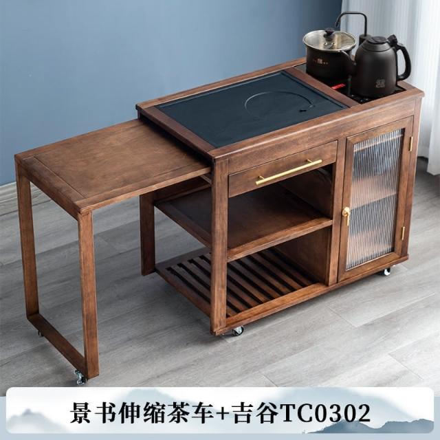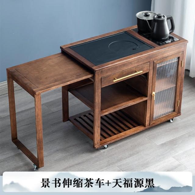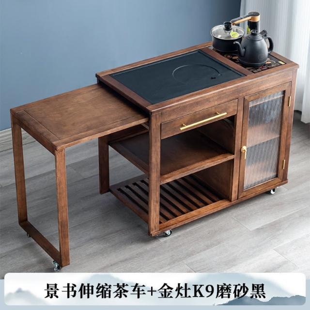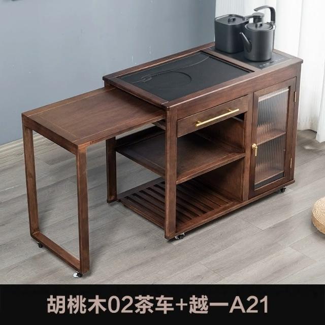 110V 胡桃木茶水櫃實木茶桌邊櫃燒水櫃一體可伸縮茶車移動茶几小茶台桌 茶車 茶桌 泡茶桌 移動茶台 套裝 茶几
