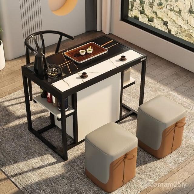 110V 陽臺茶桌椅組閤現代簡約輕奢家用小茶臺自動上水泡茶桌套裝一體桌 茶桌 泡茶桌 茶車 實木 茶水櫃 3RYC