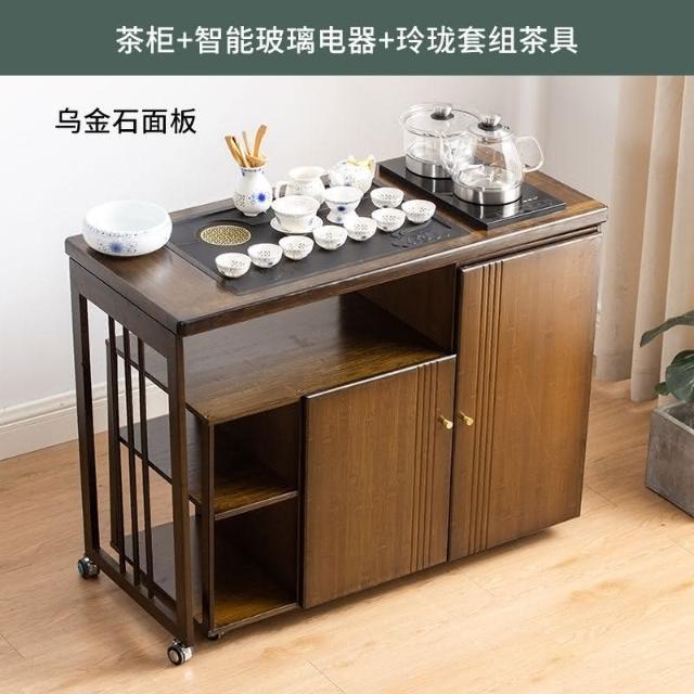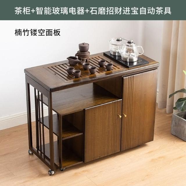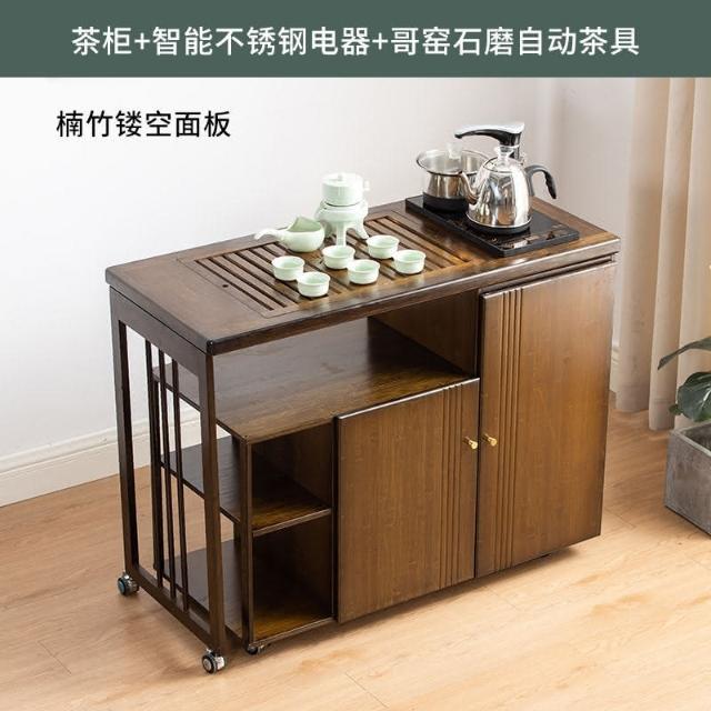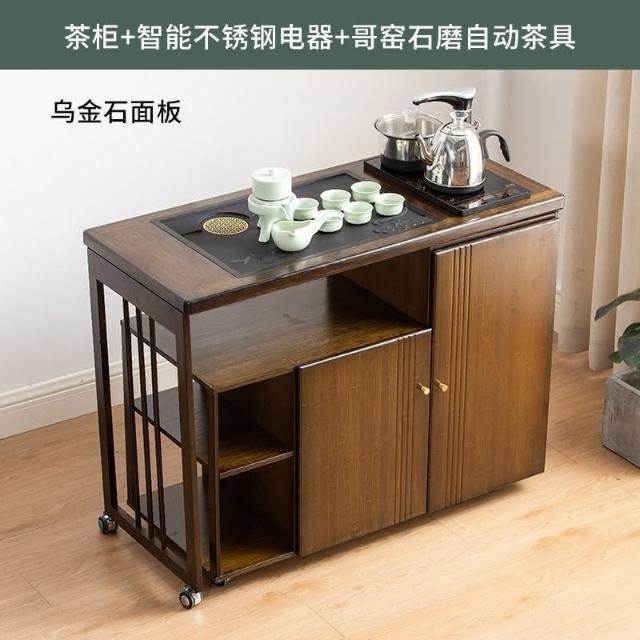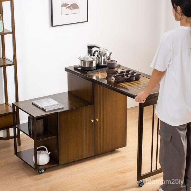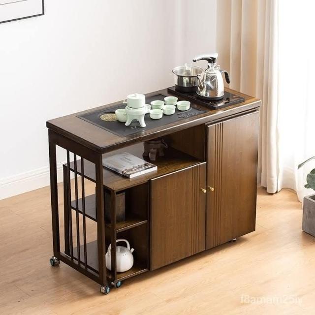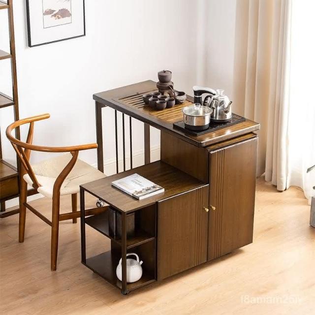 110V 移動茶桌茶臺旋轉陽臺小茶車客廳帶輪功夫茶幾燒水茶盤一體泡茶臺 茶桌 泡茶桌 茶車 實木 茶水櫃 GIXW