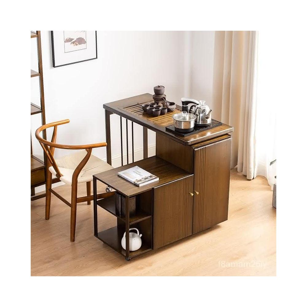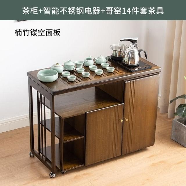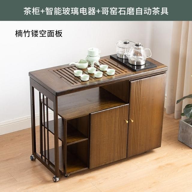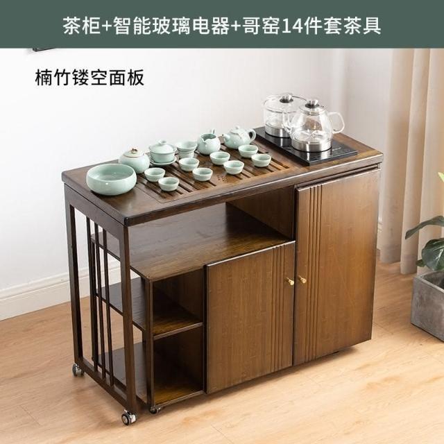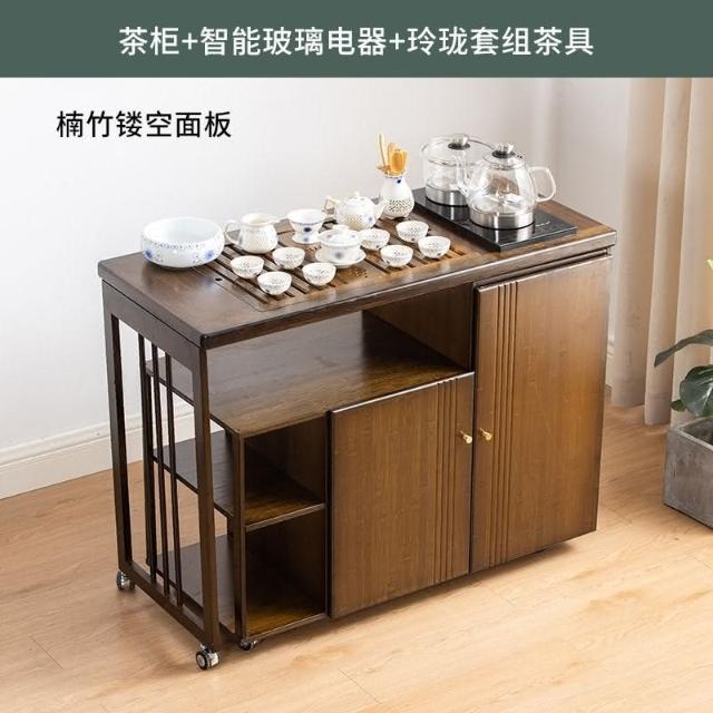 110V 移動茶桌茶臺旋轉陽臺小茶車客廳帶輪功夫茶幾燒水茶盤一體泡茶臺 茶桌 泡茶桌 茶車 實木 茶水櫃 GIXW