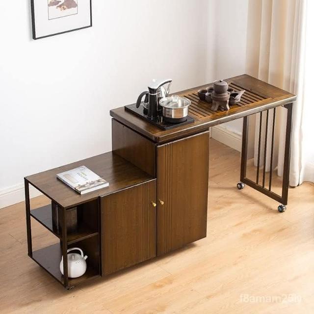 110V 移動茶桌茶臺旋轉陽臺小茶車客廳帶輪功夫茶幾燒水茶盤一體泡茶臺 茶桌 泡茶桌 茶車 實木 茶水櫃 GIXW