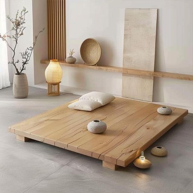 侘寂風實木榻榻米地臺床日式酒店家用臥室原木闆床架民宿家具 1LXI