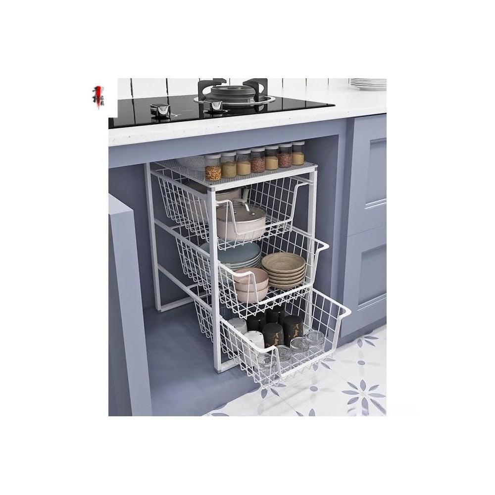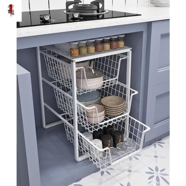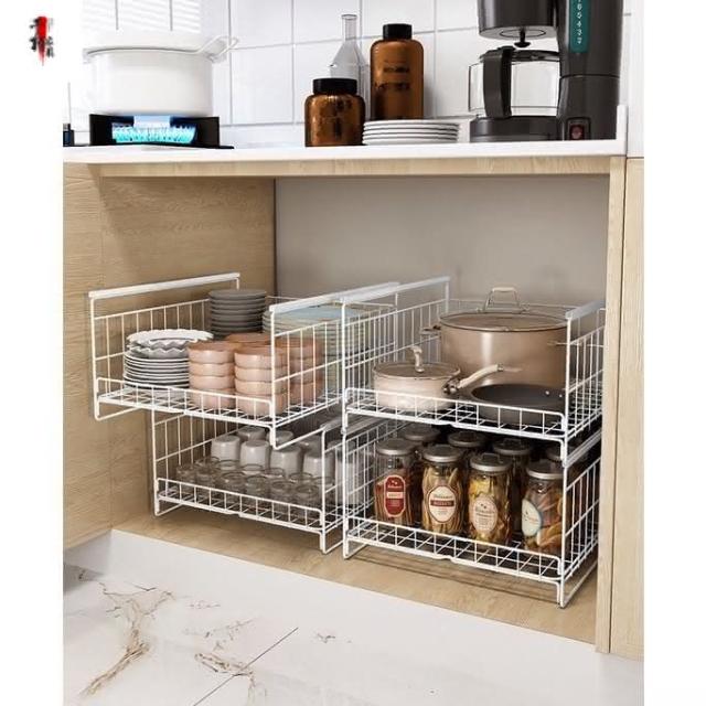 拉籃廚房櫥櫃 廚房拉籃 碗柜收納 餐具柜 抽屜式改造碗架 碗盤收納架 碗碟調料調味雙層置物架收納筐窄柜子