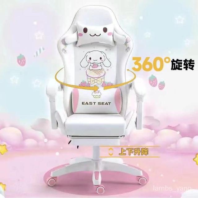 粉色電競電腦椅玉桂狗可愛皮麵女生辦公椅子粉白打遊戲久坐高顔值