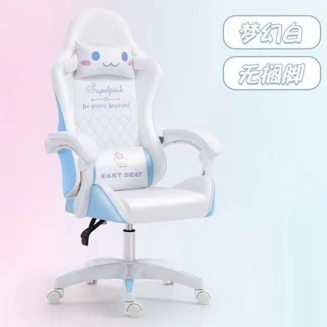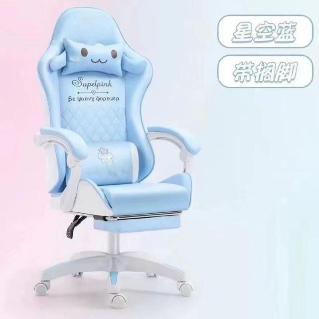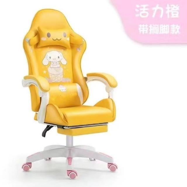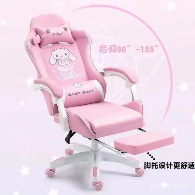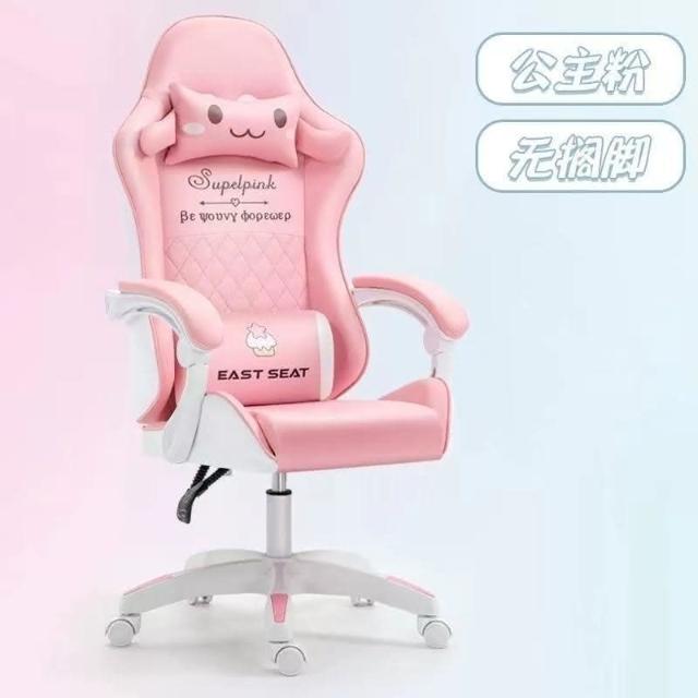 粉色電競電腦椅玉桂狗可愛皮麵女生辦公椅子粉白打遊戲久坐高顔值