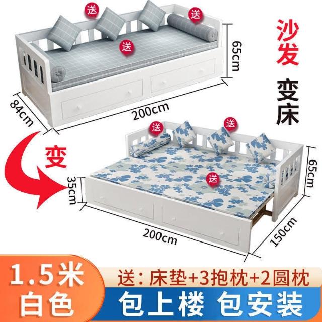 可折疊沙發床雙人抽拉式小戶型實木單人客廳伸縮坐臥兩用床推拉