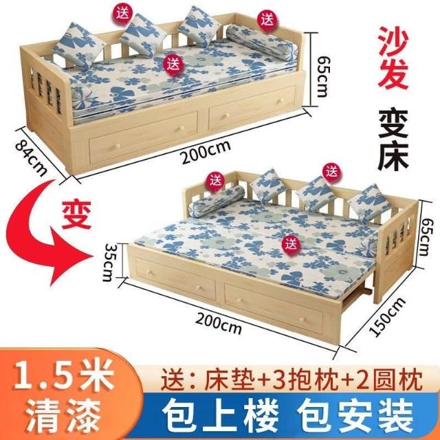 可折疊沙發床雙人抽拉式小戶型實木單人客廳伸縮坐臥兩用床推拉