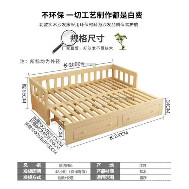 可折疊沙發床雙人抽拉式小戶型實木單人客廳伸縮坐臥兩用床推拉