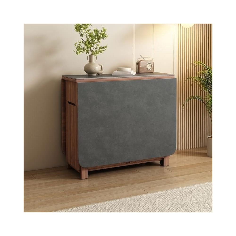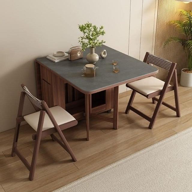 🌹巖闆折疊餐桌家用小戶型多功能可折疊桌邊櫃一體移動收納伸縮餐桌