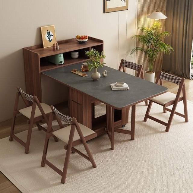 🌹巖闆折疊餐桌家用小戶型多功能可折疊桌邊櫃一體移動收納伸縮餐桌