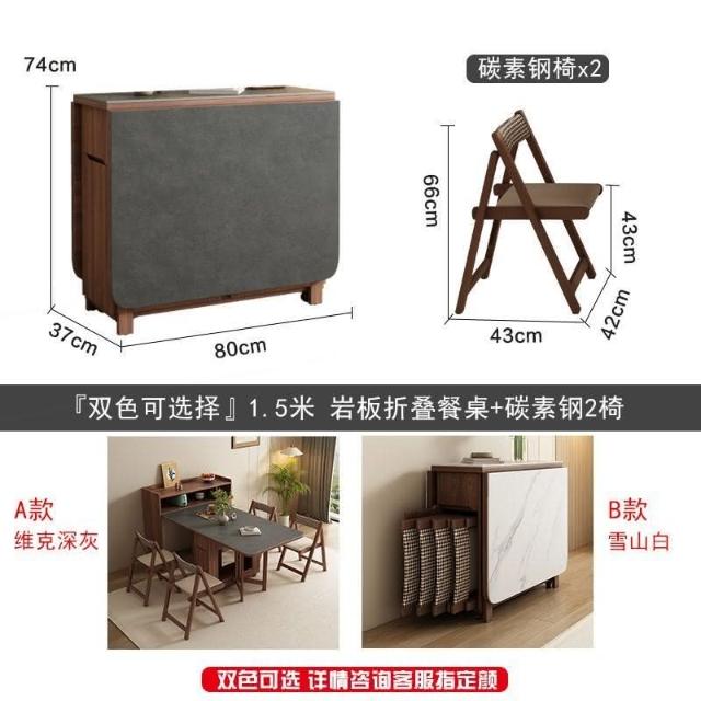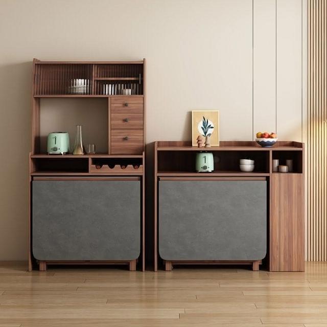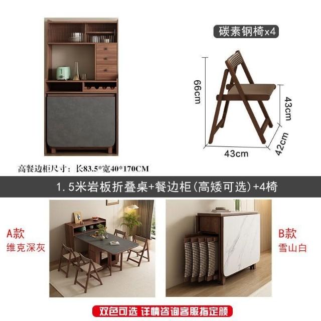 🌹巖闆折疊餐桌家用小戶型多功能可折疊桌邊櫃一體移動收納伸縮餐桌