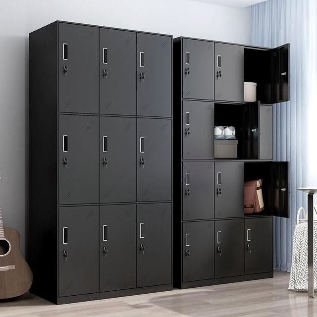 可開發票 免運 黑色更衣櫃員工宿捨鐵皮儲物櫃帶鎖加厚收納櫃健身房更衣室換衣櫃