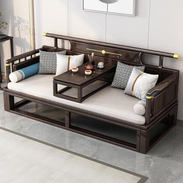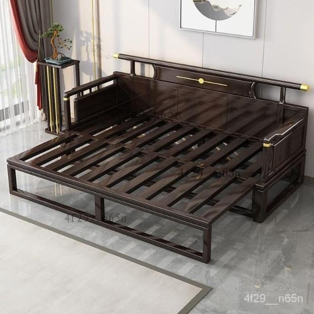 可開發票 廠傢直銷 新中式實木羅漢床伸縮客廳傢具簡約現代小戶型推拉床沙髮床榻炕幾