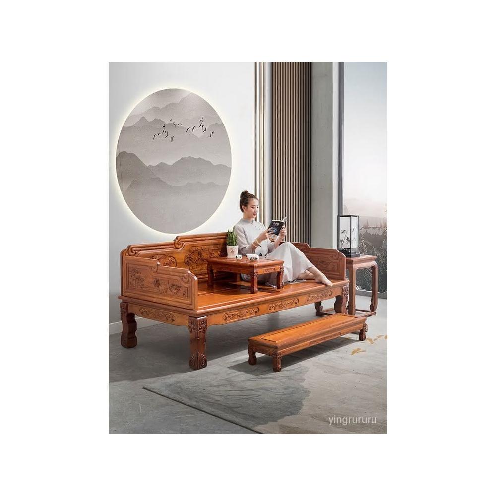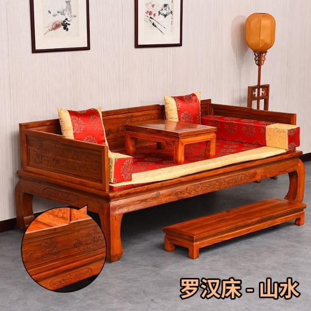 免稅 實木羅漢床實木中式沙髮床老南榆木酒店茶樓民宿仿古傢具簡約禪意床榻羅漢床 實木沙發 床榻 躺椅 B7HU