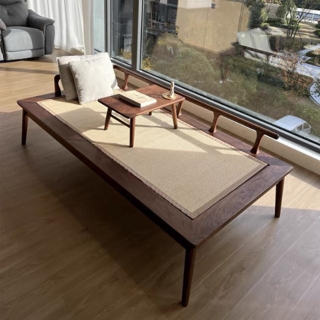 時光家居 新中式羅漢床現代簡約榆木貴妃蹋禪意沙髮客廳床榻陽臺休閒沙髮床