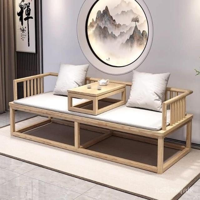 🔥免運🔥送貨上樓🔥新中式全實木羅漢床明式客廳傢用小戶型簡約沙髮床兩用禪意羅漢椅