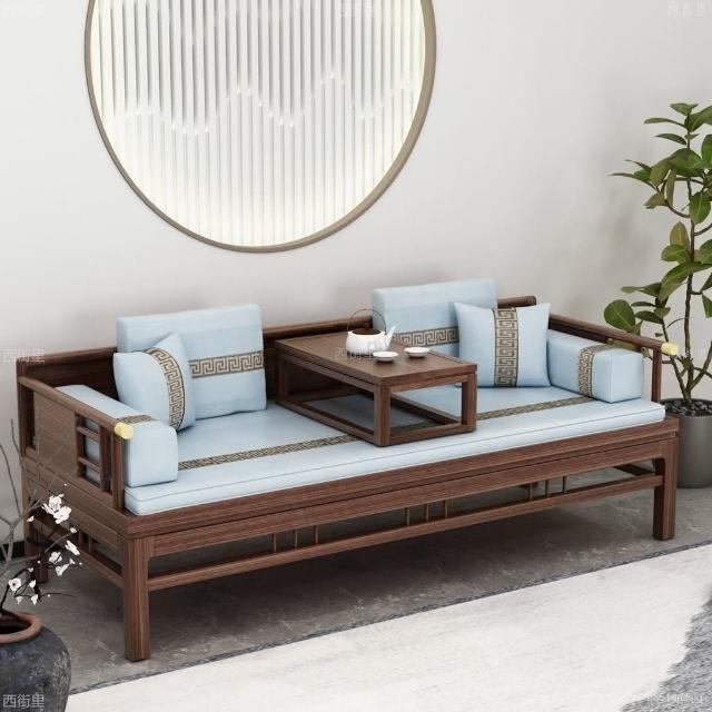 免運 可上門安裝💕廠傢精選 羅漢床 全實木羅漢床老榆木新中式羅漢塌榻沙髮椅床推拉小戶型茶桌椅組閤 7ELA
