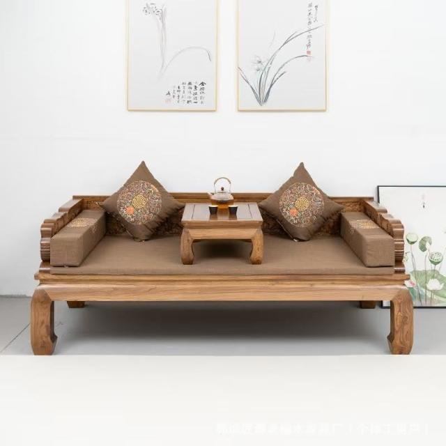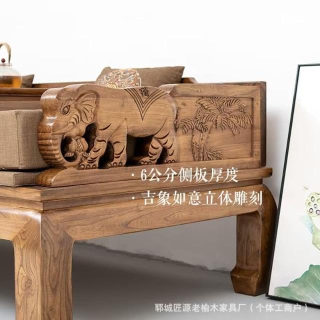 工廠直髮 老榆木羅漢床實木鵰刻新中式榫卯仿古羅漢榻沙髮床榻木質客廳家具