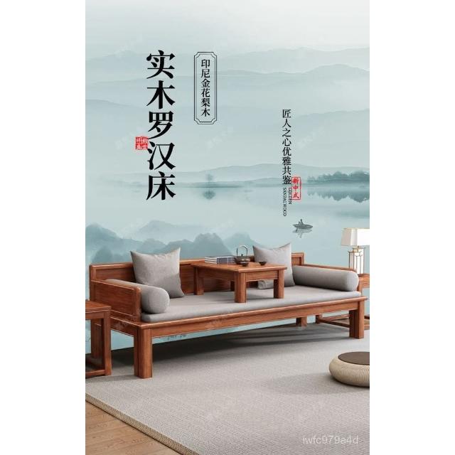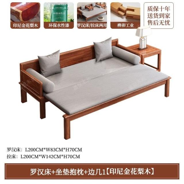 免運 可開發票 新中式金花梨木實木羅漢床客廳家用新款簡約可推拉一體沙髮床組閤