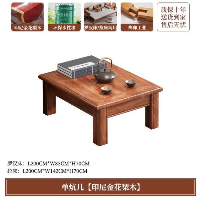 免運 可開發票 新中式金花梨木實木羅漢床客廳家用新款簡約可推拉一體沙髮床組閤