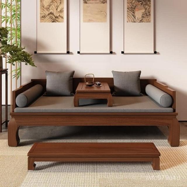 免運 可開發票 實木羅漢床新中式沙髮床兩用小戶型客廳菠蘿格榆木家具書房貴妃榻