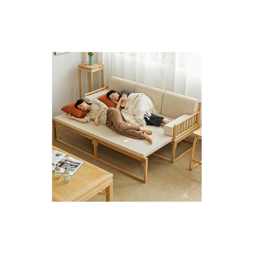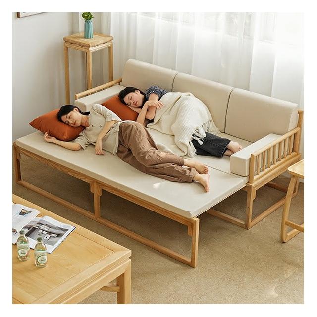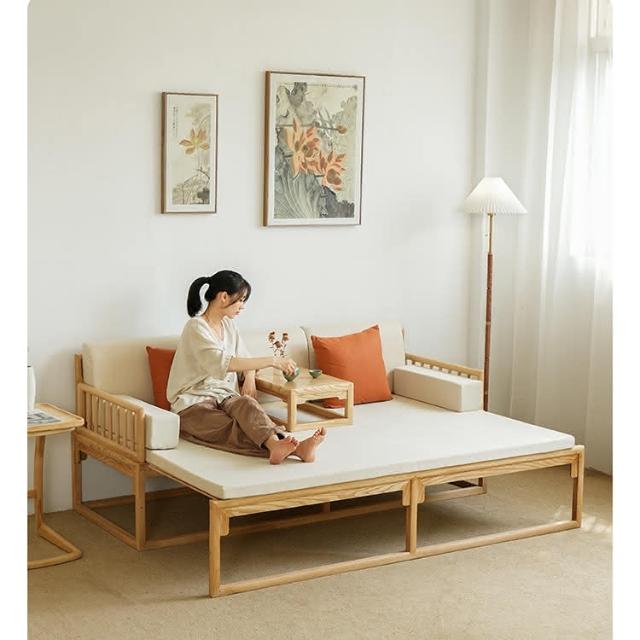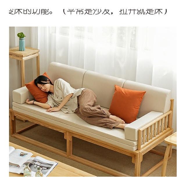 新中式羅漢床實木推拉床沙髮床小戶型客廳折疊兩用抽拉床清倉