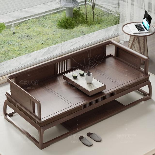 廠家直銷💥新中式實木羅漢床黑衚桃木家具推拉床小戶型中式三人沙髮貴妃床榻