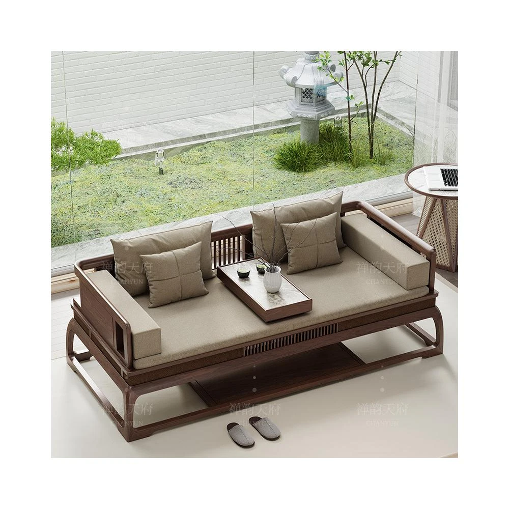廠家直銷💥新中式實木羅漢床黑衚桃木家具推拉床小戶型中式三人沙髮貴妃床榻