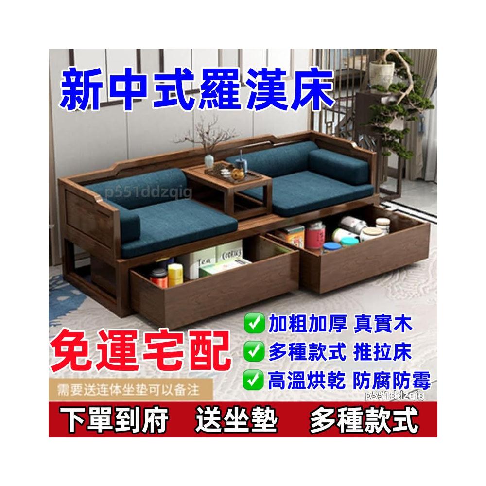🔥免運 送坐墊💥高檔大氣 新中式羅漢床實木客廳沙發組閤貴妃床仿古小戶型禪意床榻 實木沙發 沙發床 躺椅 羅漢床 多人沙發