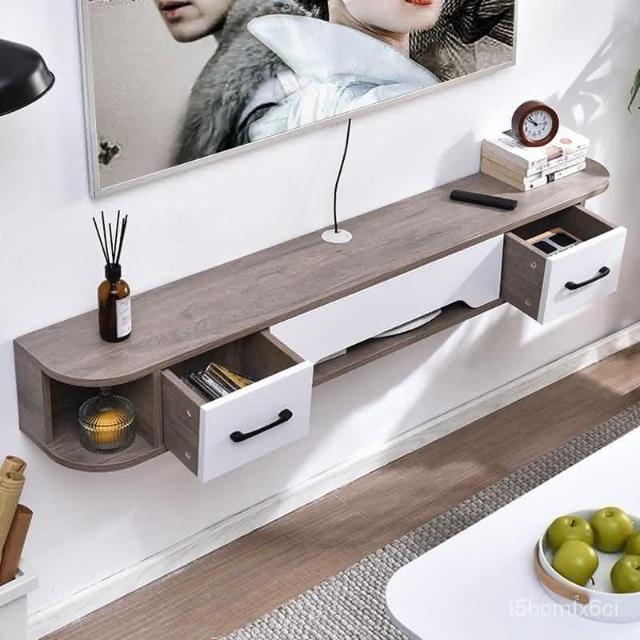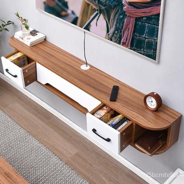 免運 可開發票 電視櫃 地櫃 電視機櫃 組閤櫃 儲物櫃 實木圓角電視櫃弧形壁掛式客廳臥室簡約現代懸掛機頂盒收納盒弔櫃