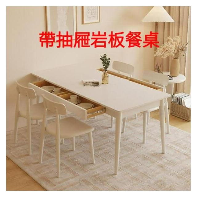 含稅/免運 北歐實木岩板餐桌奶油風白色家用小戶型白蠟木餐桌椅組合帶抽屜