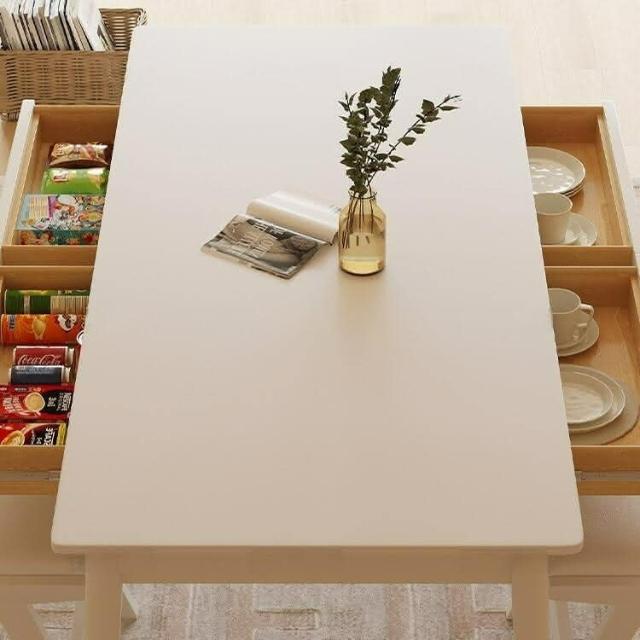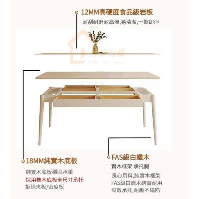含稅/免運 北歐實木岩板餐桌奶油風白色家用小戶型白蠟木餐桌椅組合帶抽屜