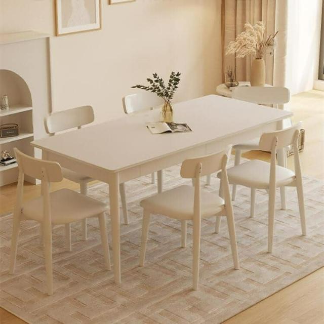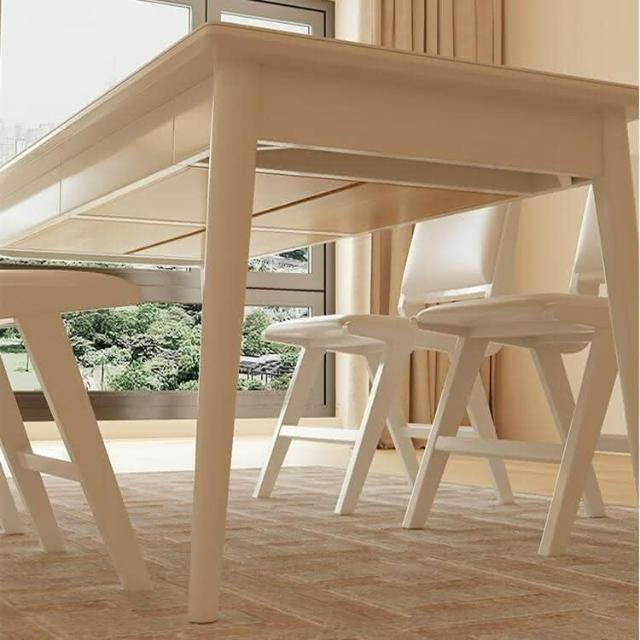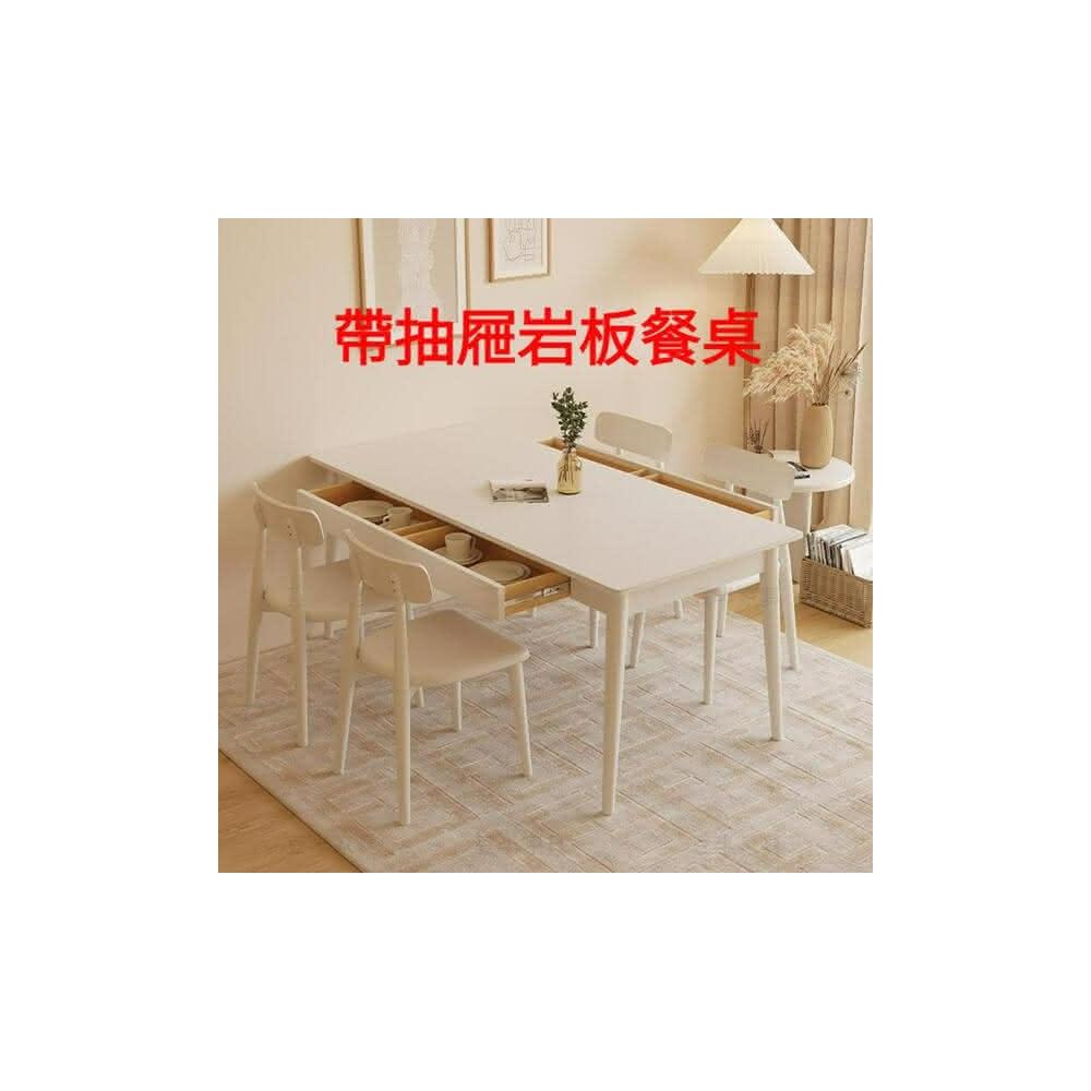 含稅/免運 北歐實木岩板餐桌奶油風白色家用小戶型白蠟木餐桌椅組合帶抽屜