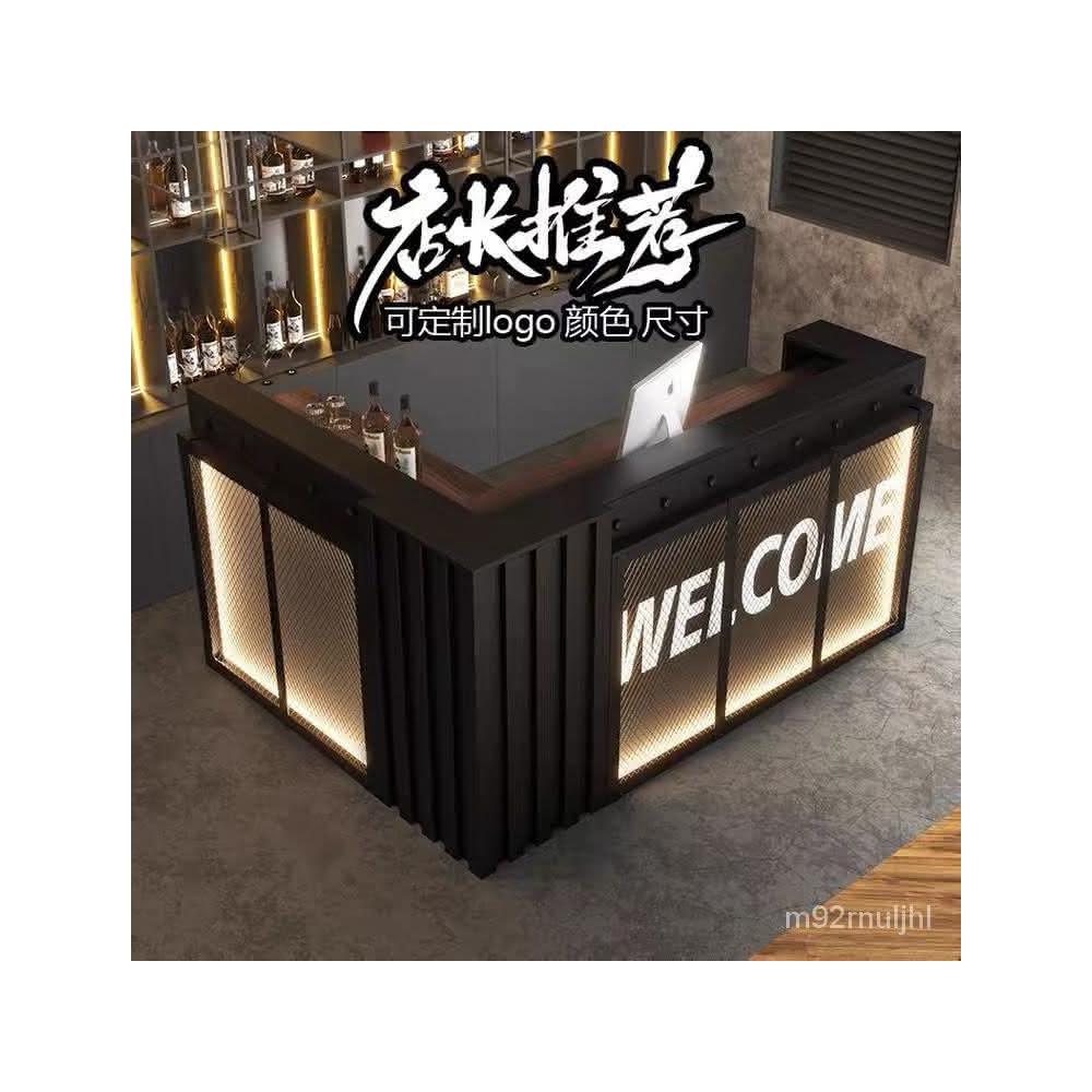 免運 複古工業風酒吧吧臺咖啡廳網吧奶茶店前臺收銀臺定製鐵藝吧臺收銀臺 接待臺 櫃檯 儲物臺 櫃臺 吧檯 K4AS