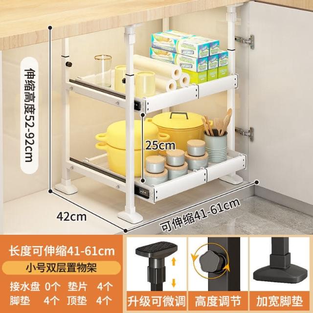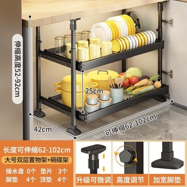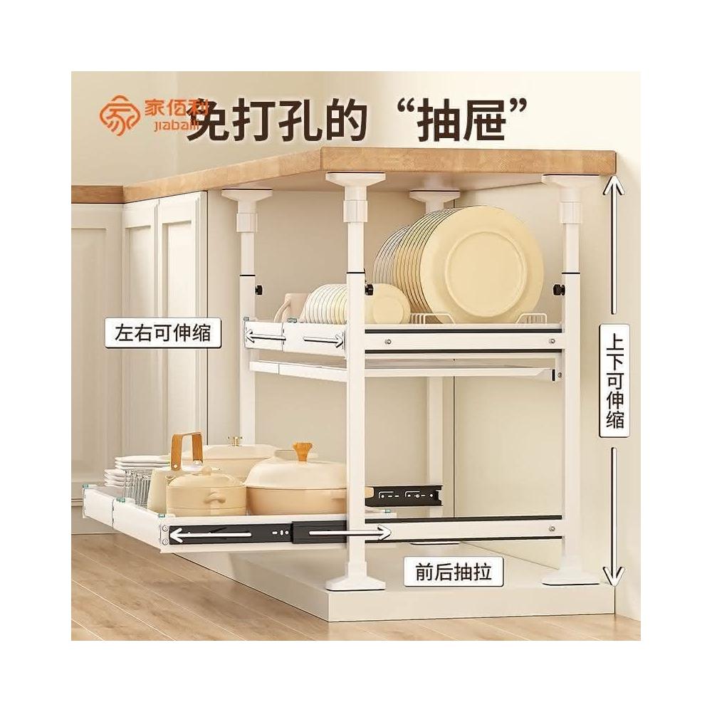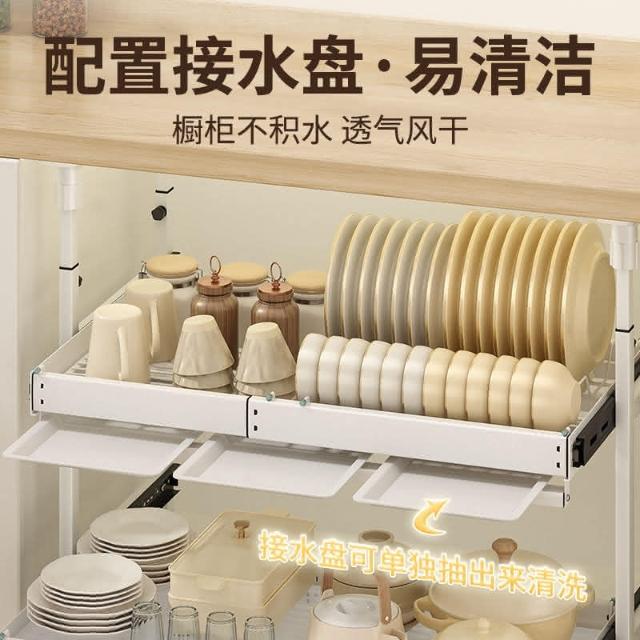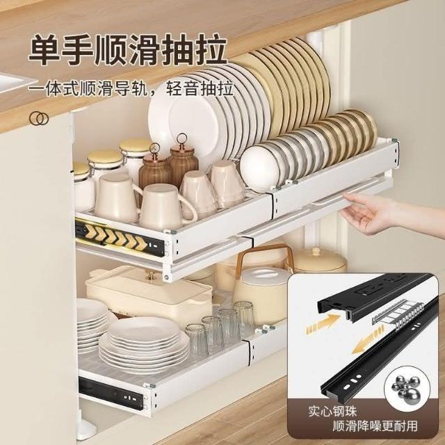 廚房拉籃櫥櫃免打孔雙層調味碗碟櫃內不銹鋼抽屜式廚櫃碗碟置物架