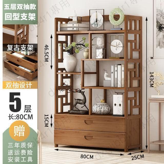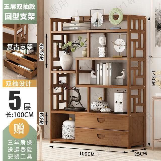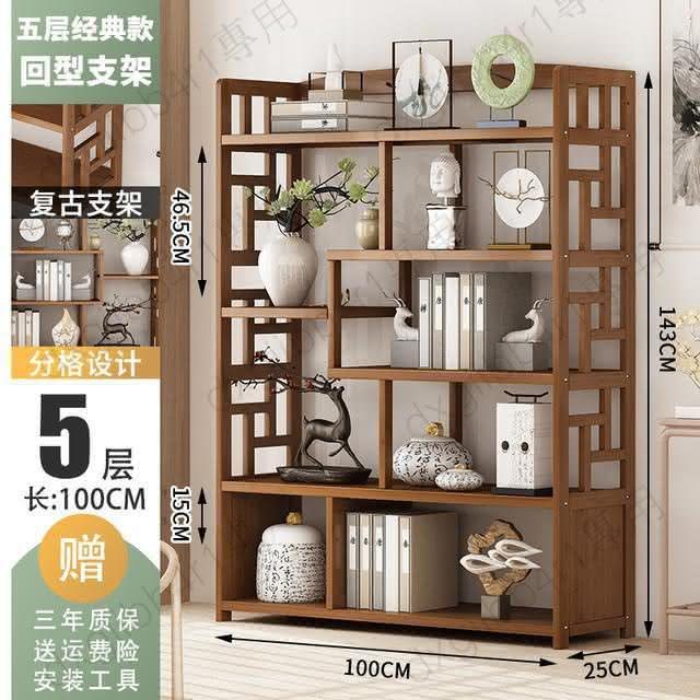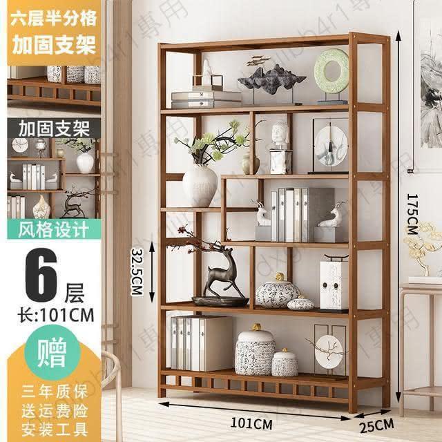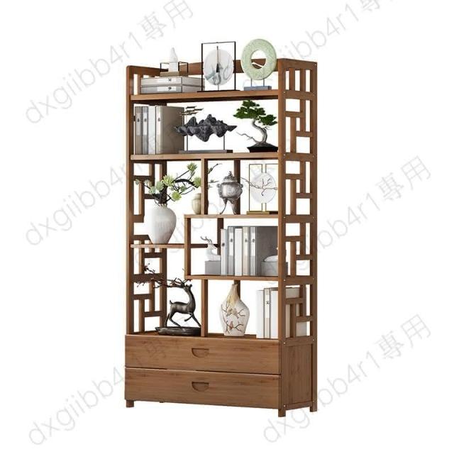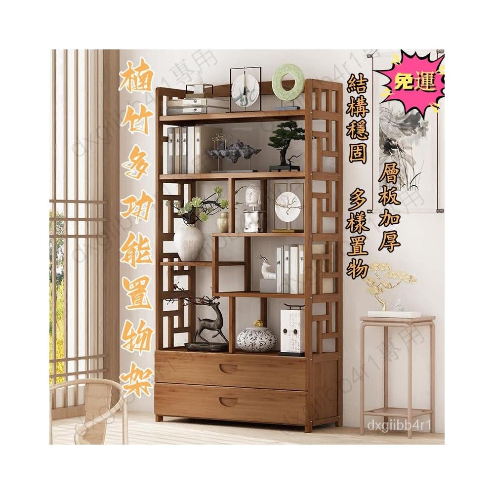 免運 博古架简易中式书架书柜落地隔断置物架楠竹多层书房客厅组合柜子
