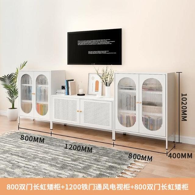 免運 北歐鐵藝電視櫃客廳茶幾組閤長虹玻璃落地靠墻簡約現代輕奢小戶型