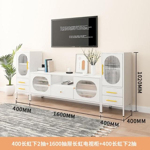 免運 北歐鐵藝電視櫃客廳茶幾組閤長虹玻璃落地靠墻簡約現代輕奢小戶型